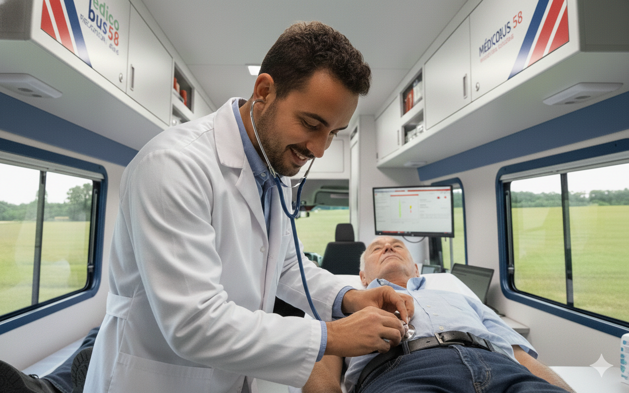 Véritable cabinet médical itinérant, le Médicobus 58 contribue à couvrir les communes de la Nièvre dépourvues de médecin généraliste. Il permet ainsi aux populations les plus éloignées de pouvoir prétendre à un accès aux soins et à des actions de prévention.